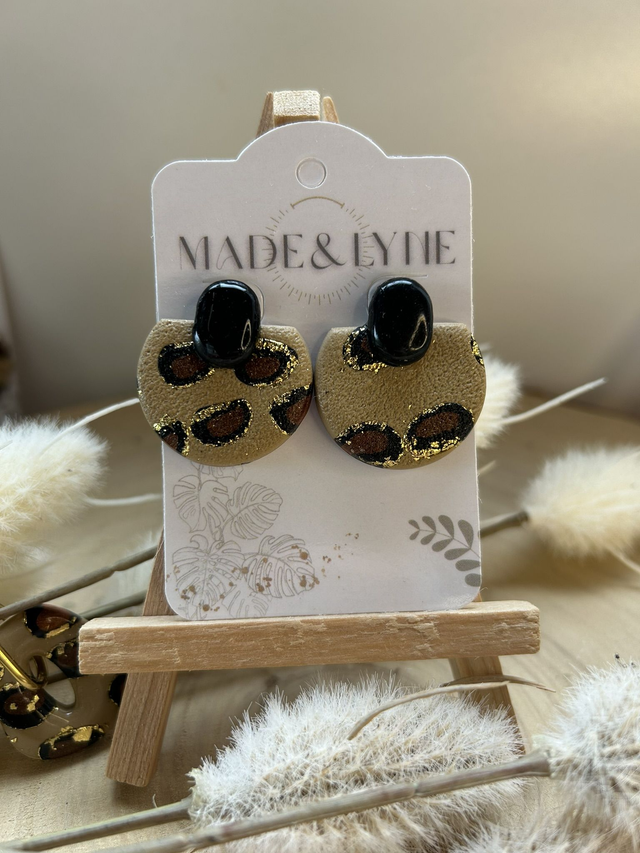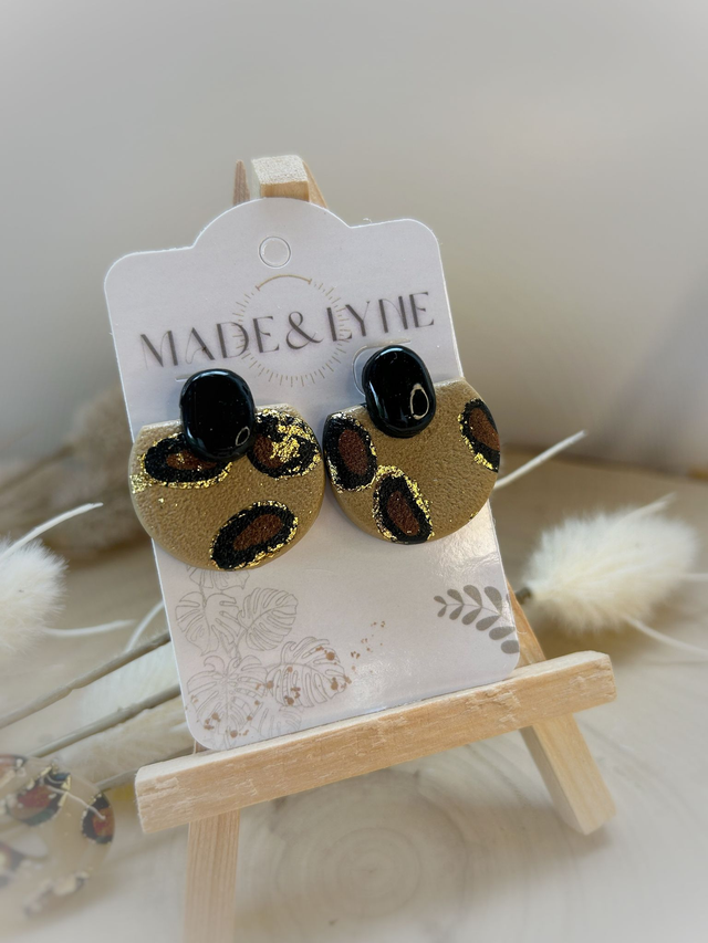 Elles allient un motif léopard texturé rehaussé de pointes dorées, avec le contraste du noir verni.