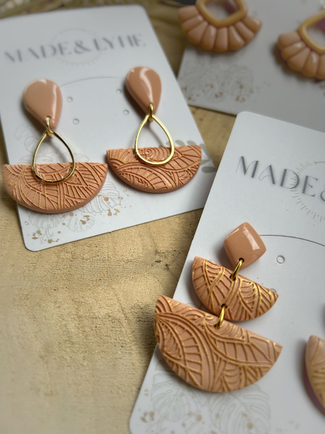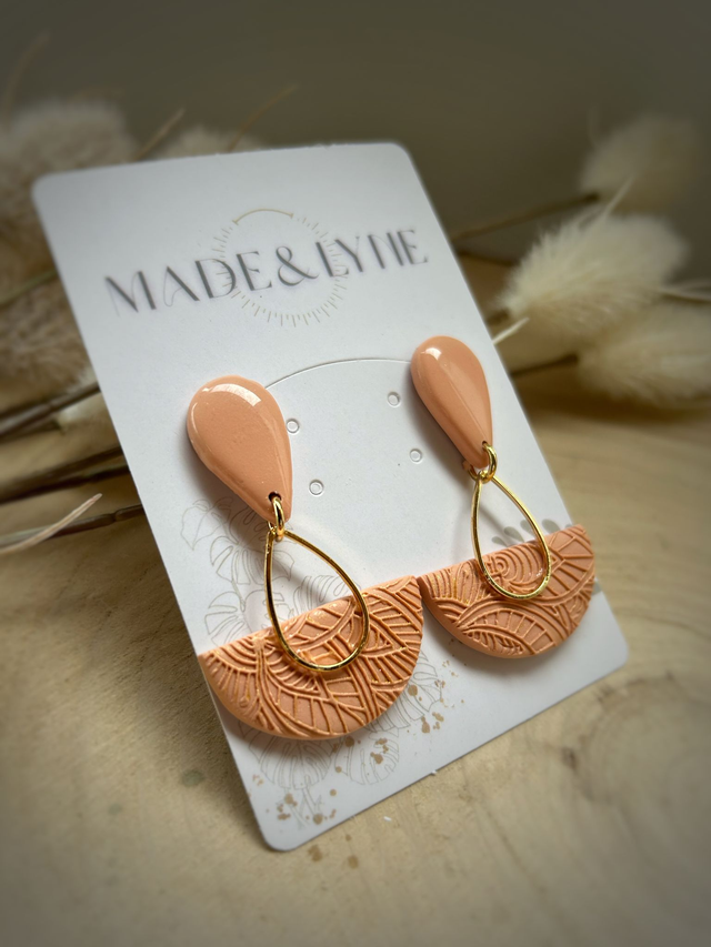Façonnées à la main en pâte polymère dans une teinte sable subtilement nacrée et protégées par un vernis satiné, elles évoquent la fluidité et l’harmonie.