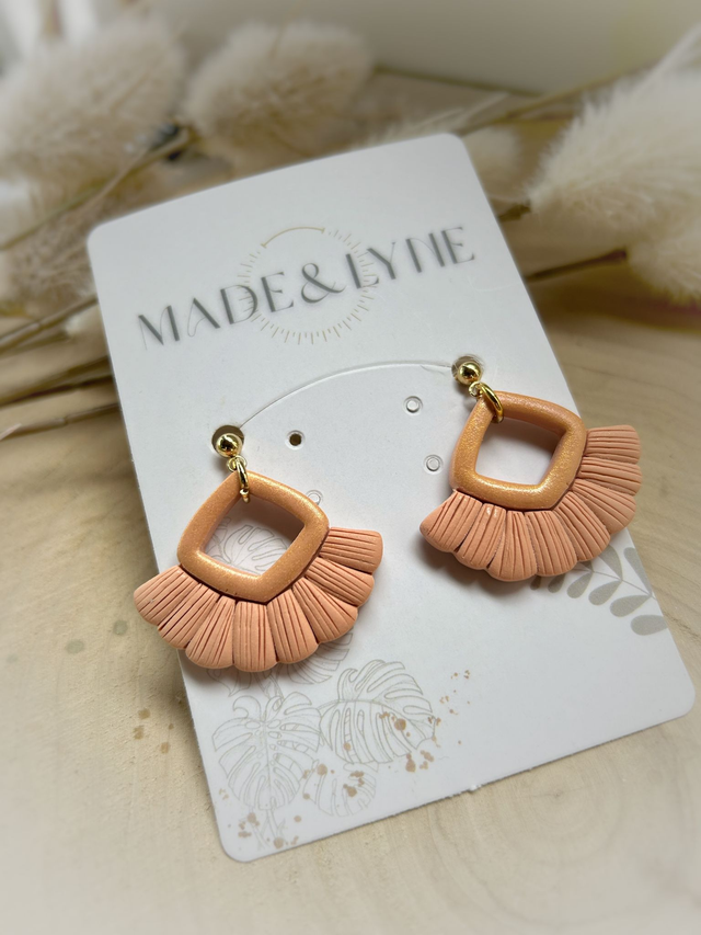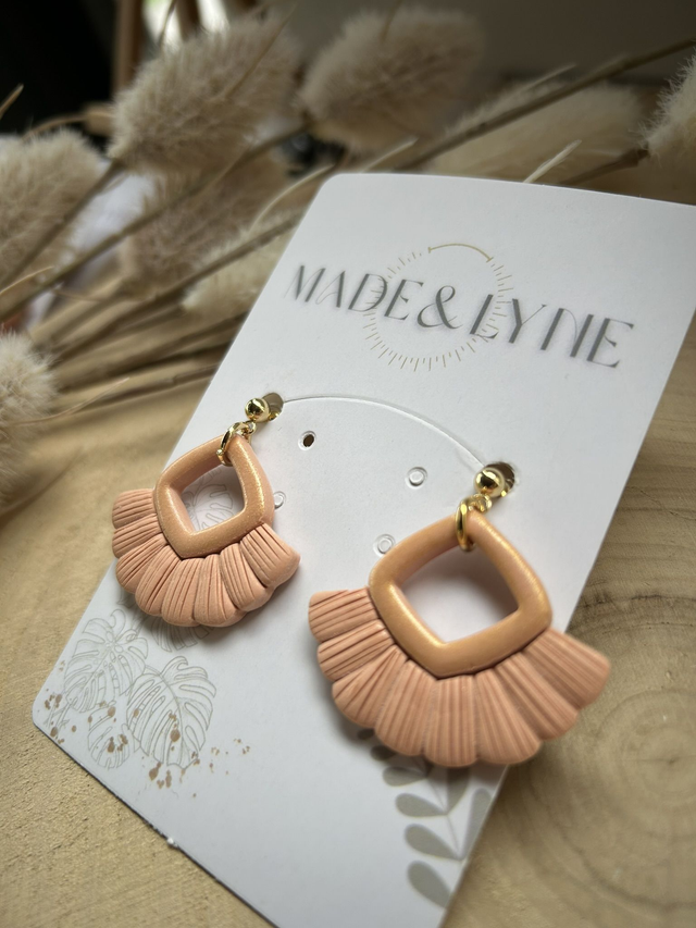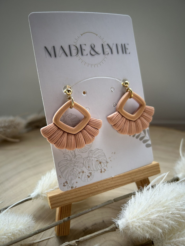 Façonnées à la main en pâte polymère dans des tons doux et lumineux, elles allient géométrie et délicatesse pour un rendu bohème et raffiné. Leur design léger évoque l’élégance d’un tissage artisanal, revisité dans une version contemporaine.